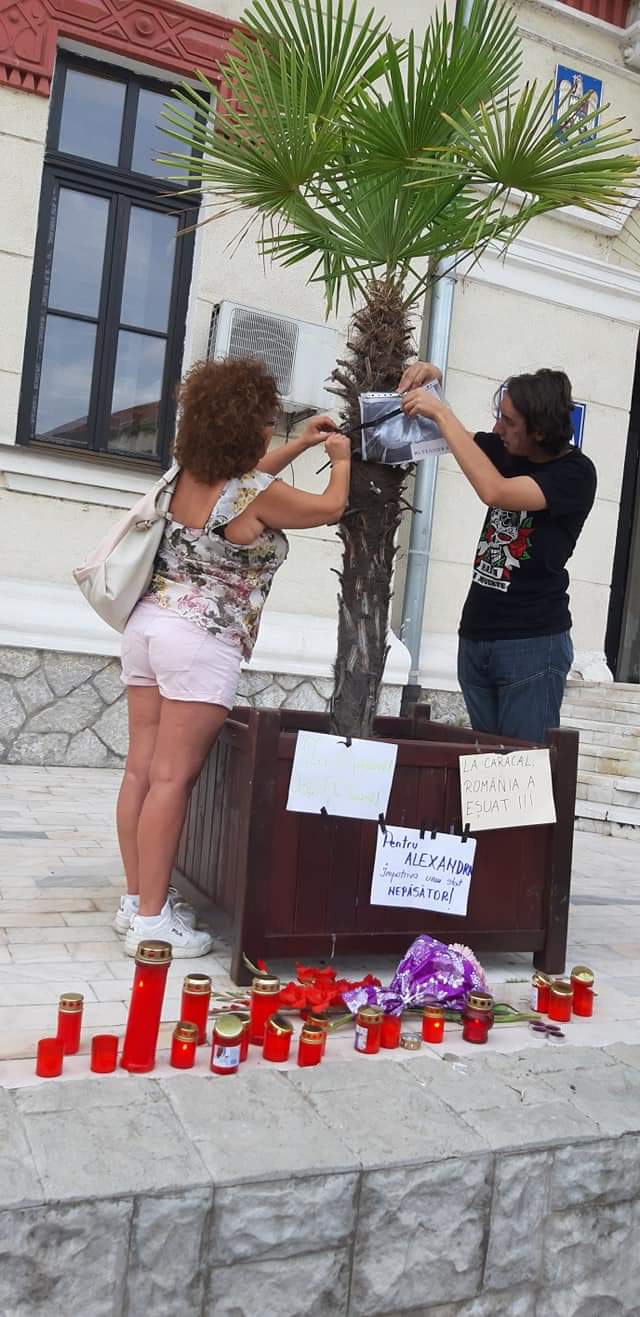 Crima din Caracal a scos în această după amiază din casă zeci de mămici și copii din Târgu Jiu. Aceştia au protestat paşnic în centrul orașului. Au fost aprinse lumânări în memoria Alexandrei și au fost lipite afișe cu mesaje de protest.