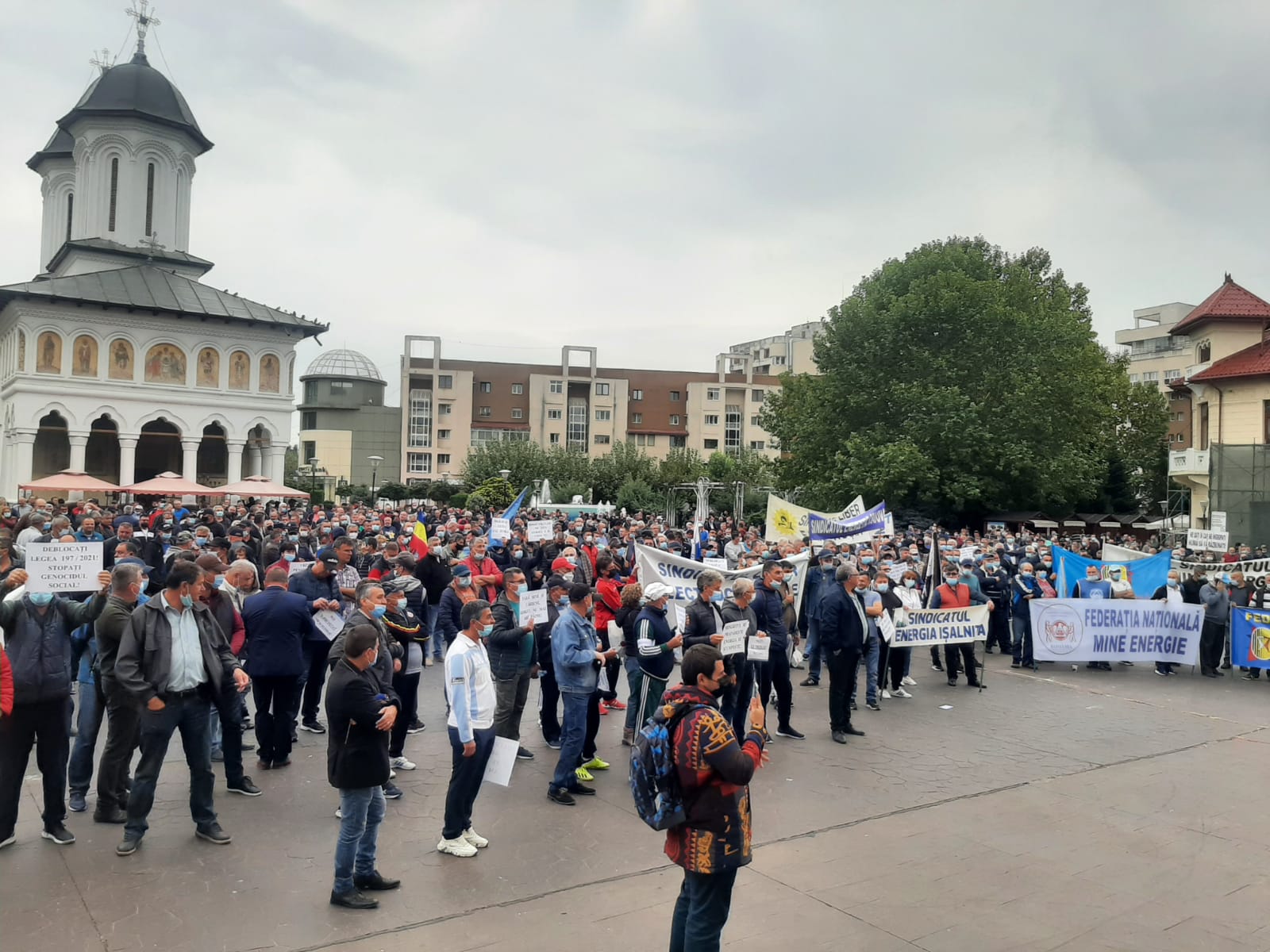 După trei luni de pauză, o parte a sindicatelor din Complexul Energetic Oltenia reia protestele în Piața Prefecturii, din Târgu Jiu.