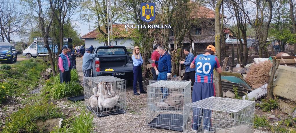 Având în vedere că animalele se aflau în pericol, polițiștii au emis patru ordine de plasare în adăpost pentru 20 de rațe, 13 porci, doi câini, o găină şi o pisică, pentru o perioadă de 45 de zile.