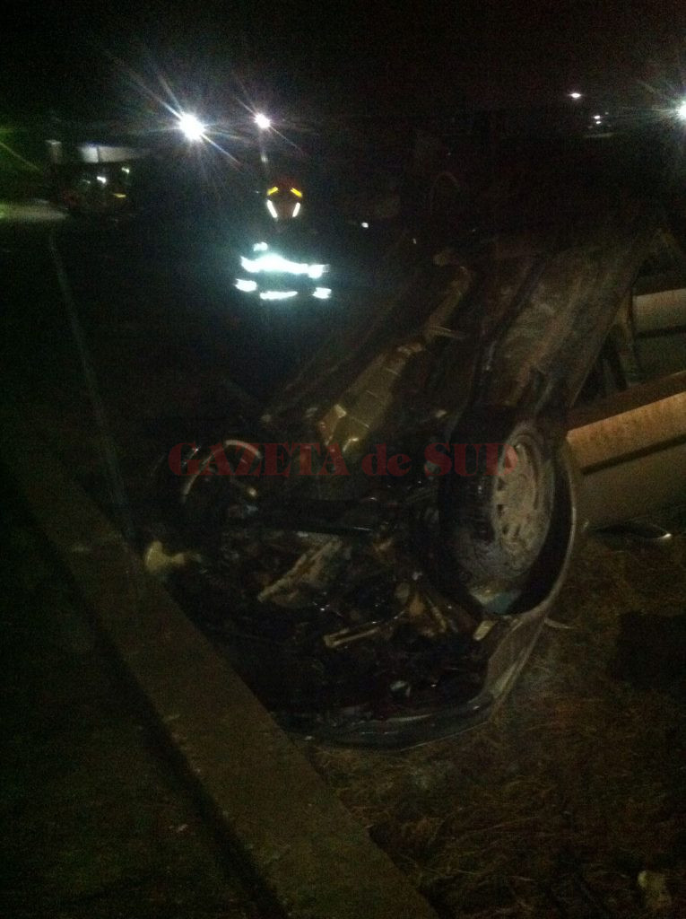 Imediat după impact, autoturismul a luat foc, iar incendiul a foat stins de pompieri.