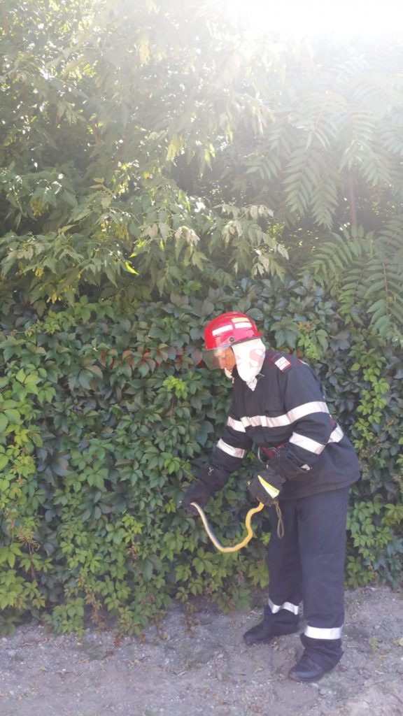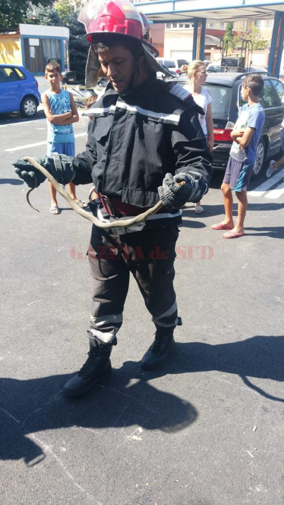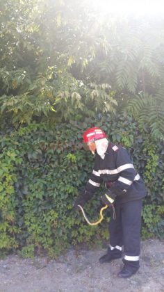La solicitarea IJJ, Un echipaj de pompieri din cadrul Detaşamentului Drobeta Turnu Severin a intervenit în urmă cu puţin timp pentru îndepărtarea unui şarpe dintr-un autoturism parcat pe strada Topolniţei, din municipiu. Pompierii au capturat reptila, un șarpe de casă, cu o lungime de circa 120 cm, ce se afla la compartimentul motor al autoturismului: Şarpele a fost eliberat în mediul lui natural.