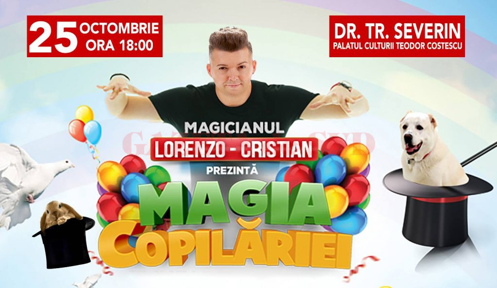 Lorenzo-Cristian, cel mai titrat magician român şi va pune în scenă pe 25 octombrie, ora 18.00, cel mai mare spectacol de magie pentru copii din România, în Drobeta Turnu Severin.
