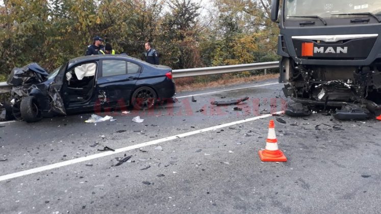 UPDATE: Din accident a rezultat decesul unui bărbat de 33 ani din Lugoj, șoferul BMW-ului. Şoferul tirului, în vârstă de 50 de ani, din Macedonia, a fost testat cu etilotestul, rezultatul fiind 0. Cauza coliziunii o reprezintă depășirea neregulamentară pe marcaj continu.