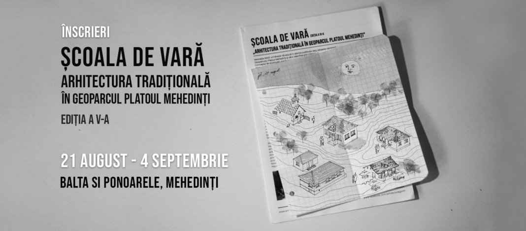 Tinerii din întreaga țară pot să participe la cea de-a V-a ediție a școlii de vară de antropologie, design și arhitectură, „Arhitectura tradițională în Geoparcul Platoul Mehedinți”, organizată între 21 august și 4 septembrie în satele din comunele Balta și Ponoarele.