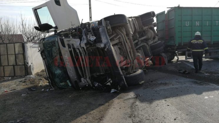 (Video) Olt: Un autocamion cu furaje s-a răsturnat la Salcia
