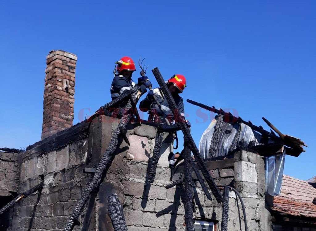 Au ars acoperișul anexei pe circa 40 de metri pătrați și aproximativ două tone de furaje, depozitate în podul anexei.