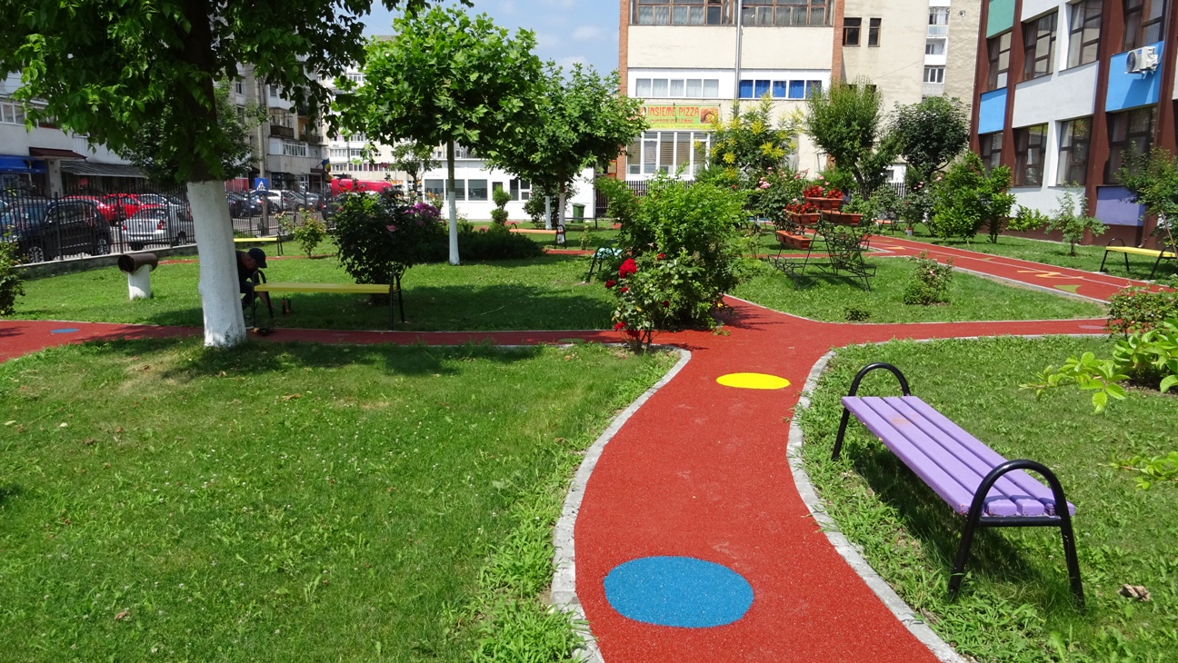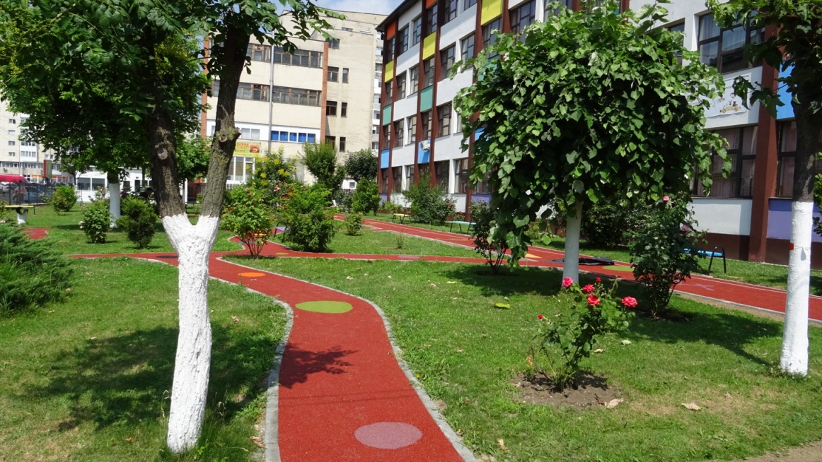 La acest moment este aproape de finalizare amenajarea parcului din faţa unităţii de învăţământ, unde s-a montat covor poliuretanic cu decoraţiuni specifice, s-a aşternut gazon şi s-au amplasat băncuţe.
