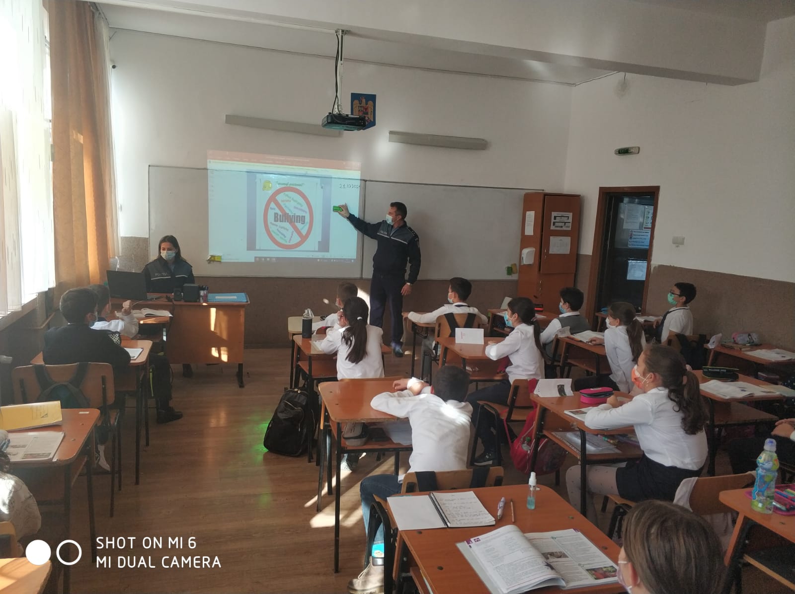 Polițiștii Biroului Siguranță Școlară desfășoară în această perioadă, începând cu data de 21 octombrie, activități preventive în școlile gimnaziale din mediul rural și urban, pe tema bullyingului, cyberbullyingului, a actelor de violență și a traficului de persoane.