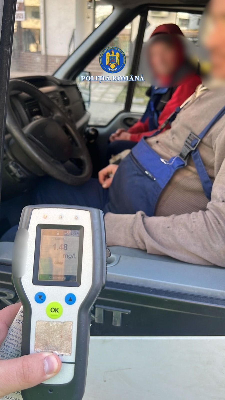 Testarea cu etilotestul a indicat o valoare de 1,48 mg/l alcool pur în aerul expirat. Șoferul a fost condus la o unitate medicală pentru recoltarea probelor biologice, în vederea stabilirii alcoolemiei în sânge.