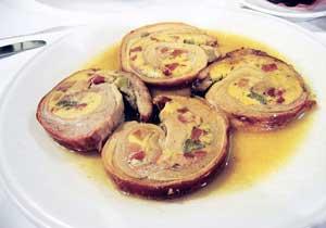 Umplutura cu carne: 500 de grame de carne tocata de porc, 1 ceapa, 1-2 oua, patrunjel sau marar, sare si piper. Se caleste ceapa ca mai sus. Se adauga carnea, putina apa sau supa si se lasa pâna se patrunde carnea. Se adauga ouale. Se mai lasa trei minute dupa care se adauga mararul sau patrunjelul.