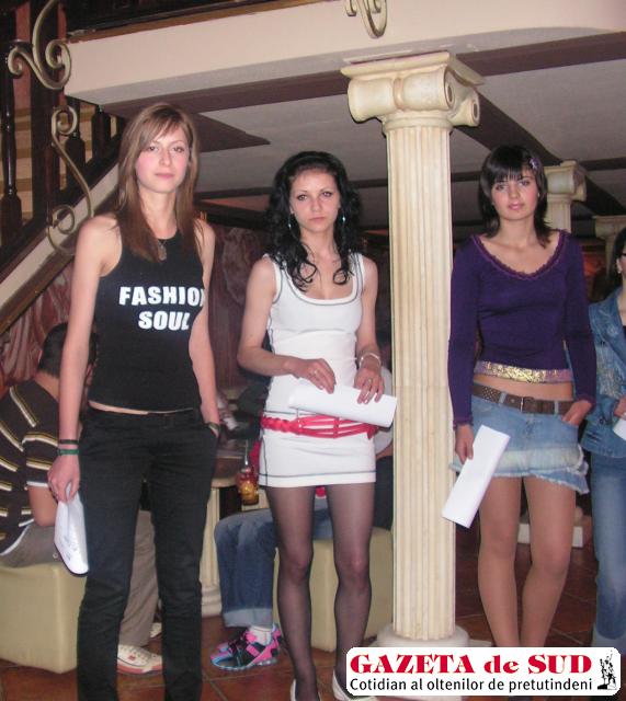 O după-amiază obişnuită, într-o discotecă binecunoscută din Craiova. Mare eveniment, mare: caravana Miss Royals Models e la Craiova. Maestrul de ceremonii anunţă: „Cele mai frumoase, cele mai înalte, cele mai cele dintre oltence sunt aşteptate…“. Mulţimea se adună. Şi din rândurile ei, fete tinere, înalte, ce poartă fuste scurte, rochii mulate, blugi, cămăşi şi accesorii la modă, atrag atenţia observatorilor specialişti. De fapt, siluete de invidiat. Se mai strecoară însă şi câte o concurentă, aspirantă la titlul de Miss, ale cărei dimensiuni nu corespund standardelor impuse de eveniment. Aşa că, din colţul în care se desfăşoară proba măsuratului, se mai aud ecouri pline de nemulţumire: „Vai! Dar eu ştiam că am 92, nu 98“. Şi câte alte asemenea comentarii de acest gen, dovadă că Paştele a lăsat urme vizibile. Şi totuşi, o speranţă acolo în suflet mai rămâne. Dacă proba măsuratului dezamăgeşte, ţinuta de pe podium dă o oarecare notă de optimism. Mersul, poziţia sunt bune. Experţii zâmbesc simbolic, făcând, în acelaşi timp, un schimb de informaţii din priviri. Zarurile par a fi aruncate: „Am remarcat deja câteva fete care corespund ideii noastre. Cu câteva cosmetizări se rezolvă toate problemele rămase“, se aude glasul plin de mulţumire al reprezentantului de seamă al agenţiei, „vinovatul“ de mobilizarea aceea de mase, Tom Crângureanu.