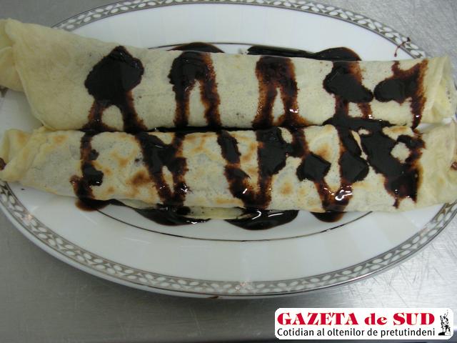 Mod de preparare: Se face compoziţia de clătite din făină, ouă, zahărul vanilat, ulei, apă minerală. Când sunt gata se umplu cu ciocolată sau finetti. Se pot servi cu toping.