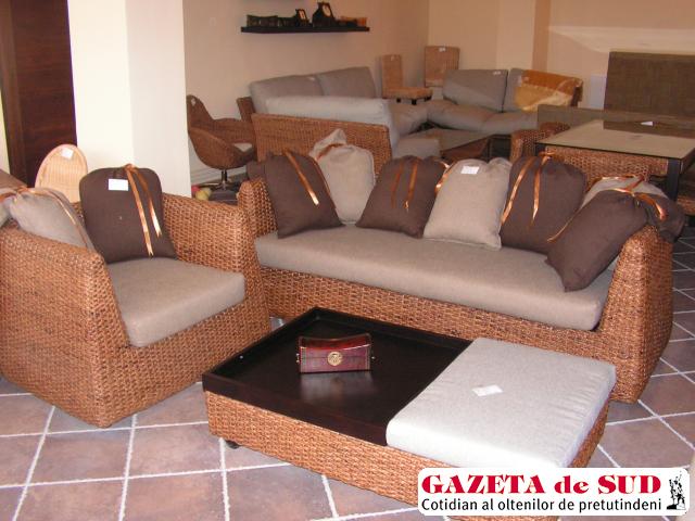 Preţul noii mobile, 899 de lei. Şi dacă partenerul de viaţă se poate mândri cu un asemenea cadou, ar fi cazul să vă faceţi şi dumneavoastră unul: un set de fotolii din zambilă de apă, asortate cu o măsuţă de cafea cu geam şi picior din lemn exotic, la 329 de lei.