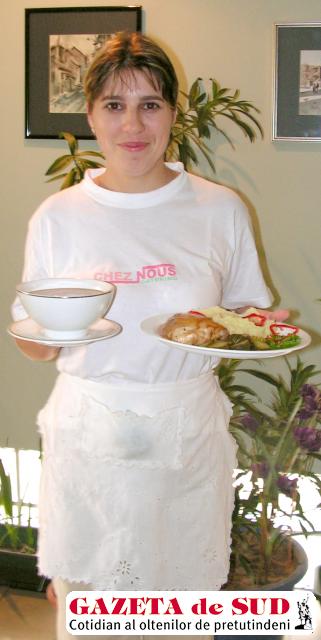 Mod de preparare: Carnea de pui se bagă la cuptor cu puţină apă şi ulei. Când este pătrunsă, apa se strecoară şi în ea se pun legumele. Când şi acestea s-au fiert, se scot, se pasează şi se face un sos din ele şi se fierbe. După ce sosul s-a îngroşat, se adaugă usturoiul şi verdeaţa şi se toarnă peste carne. Se poate servi cu piure de cartofi şi salată.