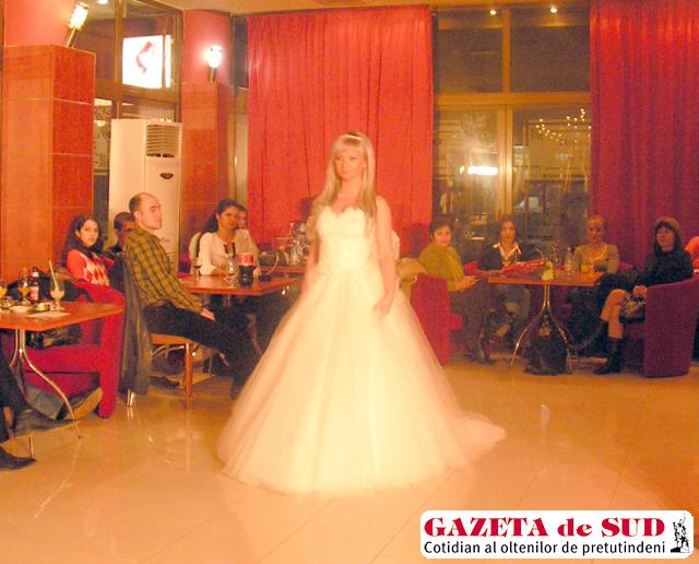 Ca la orice prezentare de modă, nu a putut să lipsească nici rochia de mireasă, pentru nunţile anului viitor designerul propunând albul imaculat. Au fost prezentate rochii de mireasă pentru toate gusturile: cu multe straturi de voal, pentru cele care preferă rochia clasică, de prinţesă, dar şi câteva modele moderne, printre care am remarcat o rochie lungă din voal, dar şi una foarte scurtă în partea din faţă şi lungă în spate.