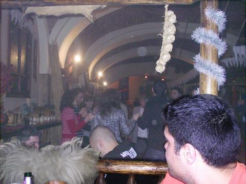 Crama Băniei. Restaurant cu specific românesc şi taraf. Cam asta auzi în reclamele posturilor de radio sau TV locale despre fosta pivniţă, pe unde s-au perindat şi alte denumiri şi stiluri, ultima fiind destul de celebră măcar pentru încăierările din zonă: Angel’s. Ajungem pe întuneric, puţin după opt. Încet, încet localul se umple. Una dintre chelneriţe, îmbrăcate în costum popular, ne bagă în seamă. Aflăm că între lansarea comenzii către bucătărie şi apariţia bucatelor pe masa noastră o să fie un timp de minimum 45 de minute. Asta e. Bem un vin fiert, stăm la palavre şi, eventual, ascultăm muzică. Şi apare formaţia. Şi începe să cânte. Prin surprindere. Adică aşteptam să mai apară membri. Dar ne-am înşelat. Formaţia era alcătuită din doi muzicanţi, plus solista. Autoritm şi armonie de la orgă, vioară şi gata trupa. Apare şi vinul fiert. În cană de pământ. Fierbinte şi cu pliculeţul în care bănuiesc că este scorţişoara. Îl gustăm. Are zahăr suficient să-l poţi folosi la lipit afişe. Dar asta a fost o greşeală. Ne vom convinge mai târziu, când vom primi altă cană, cu doza legală de zahăr.