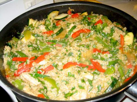 Menţiuni: Se poate face şi varianta vegetariană şi atunci puiul se înlocuieşte cu năut din conservă, iar supa de pui, cu supă de legume.