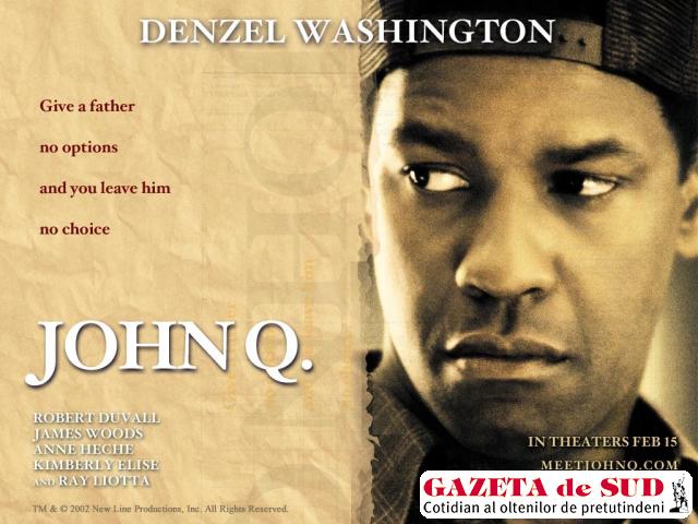 John Quincy Archibald (Denzel Washington) este un tată care are fiul bolnav de inimă şi află că acesta nu poate să facă un transplant, pentru că asigurarea nu acoperă cheltuielile. Disperat, John Q. se decide să ia ostatici toţi membrii camerei de gardă a spitalului. El le explică motivul pentru care a recurs la acest gest disperat şi le spune că nimeni nu va păţi nimic atâta timp cât transplantul o să se efectueze. John şi cei 11 ostatici încep să comunice, iar aceştia înţeleg situaţia disperată prin care trece. Filmul a primit pe site-ul de specialitate nota 6,5.