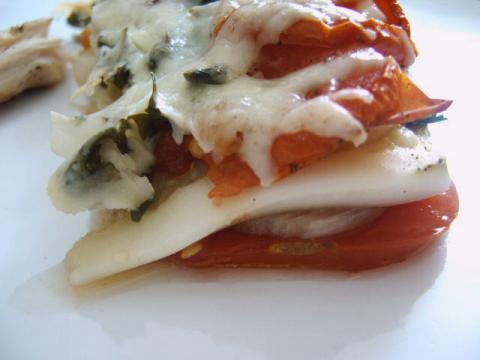 Mod de preparare: Într-o tavă de teflon se pune un strat de felii de roşii, apoi unul de ceapă, unul de dovlecei tăiaţi pe lung, apoi ardei graşi tăiaţi pe jumătate şi, la sfârşit, alt strat de roşii. Peste toate se adaugă o lingură de ulei, sare, piper şi se dă la cuptor, la 200 de grade Celsius, vreo 20-25 de minute. Când este gata, se presară deasupra verdeaţă tocată mărunt şi se rade caşcaval din belşug, după care se mai dă zece minute la cuptor. Musacaua de vară se poate servi cu piept de pui la grătar.