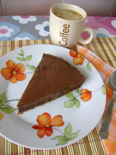 Ingrediente pentru blat: 3 ouă, 130 g zahăr, 90 ml lichior de ciocolată, 40 ml cafea tare, 130 ml ulei de floarea-soarelui, 70 g făină, 70 g nucă măcinată, 2 linguriţe praf de copt.