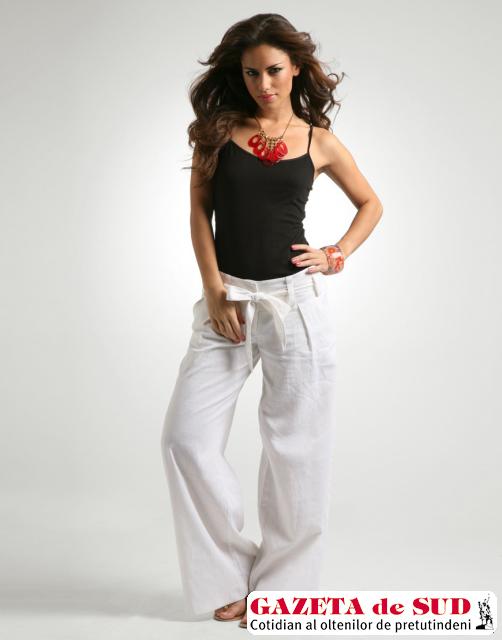 Pierdute printre rafturile magazinelor cu oferte promoţionale, doamnele şi domnişoarele nu trebuie să uite de câteva piese de vestimentaţie care pot face parte din garderoba acestei veri. Un pantalon sport din in sau bumbac este ideal pentru zilele călduroase de vară. „E de preferat ca doamnele şi domnişoarele să îşi achiziţioneze pentru perioada verii piese din materiale naturale. Singurul lor inconvenient este că se şifonează, aşa că pot apela la sinteticele naturale, care se comportă bine şi care oferă, în plus, lejeritate. Pantalonii croiţi dintr-un asemenea material sunt ideali pentru ieşirile la ceas de seară. Sunt potriviţi oricărei siluete. E drept că doamnele scunde n-ar trebuie să opteze în nici un caz pentru modelele trei sferturi. Pantalonul lung este, în schimb, ideal“, sunt sugestiile casei de modă conduse de Camelia Niţă. Dacă pantalonul v-a cucerit şi l-aţi inclus în garderoba dumneavostră, nu uitaţi să alegeţi şi o fustă pentru birou. Conică sau clasică, în culori sobre – negru, bleumarin, gri, maro – sunt preferatele doamnelor şi domnişoarelor care vor să facă o impresie bună. Li se pot alătura câteva fuste sport, cu bieuri, de data aceasta ceva mai viu colorate, roz, bleu sau mov.