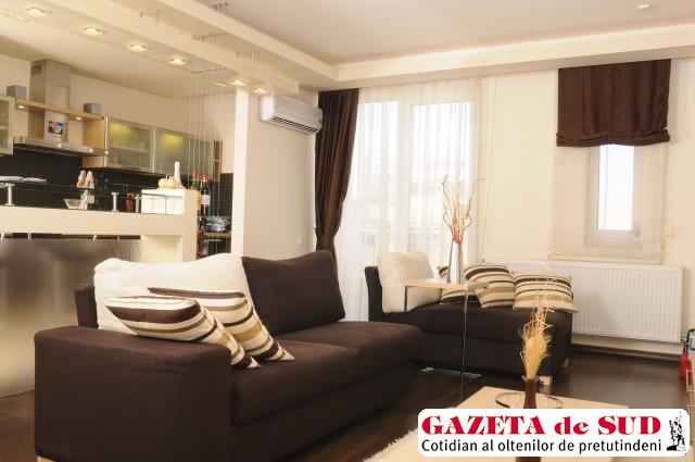 Deşi apartamentul este suficient pentru cerinţele a două persoane, totuşi spaţiul nu este foarte generos. Din acest motiv, am mers pe o zonă de zi de tip open space, cu bucătărie americană, deschisă spre living. Suprafaţa de aproximativ 50 mp a camerei de zi am împărţit-o cu ajutorul unei structuri de bar în două zone cu funcţiuni diferite: o zonă de preparare, care beneficiază de un blat de lucru complet utilat, şi un loc de relaxare, organizat în jurul televizorului“, a povestit Cristina Busuioc.
