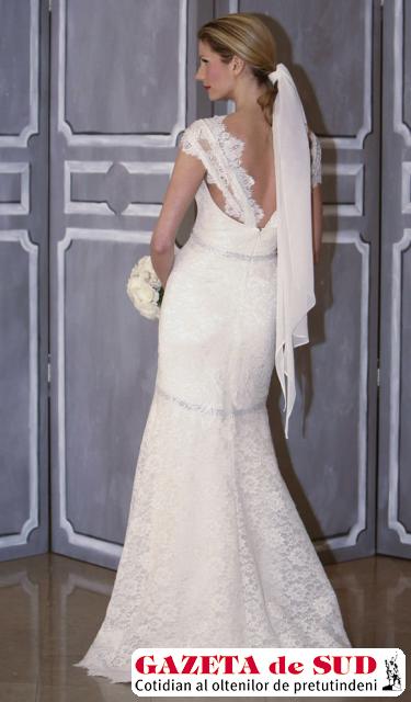 Dantela, care dă splendoare rochiei din ziua cea mare, poate fi o alternativă în alegerea materialului. Aplicarea unei dantele fine pe o rochie de mireasă o va face pe protagonistă să fie graţioasă şi feminină.