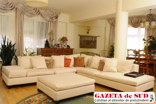 Pentru living am cumpărat o canapea de colţ de la Caesar. Foarte inspirat, soţul meu a comandat huse în două culori, aşa că le folosim pe cele deschise la culoare vara şi pe cele maro iarna. Restul mobilierului e făcut la comandă ori cumpărat de la Neoset. Obiectele de decor au mai toate o poveste. De exemplu, lampa de podea cu picior înalt am cumpărat-o din Italia. Abajurul are o textură specială şi e pictat manual. Se potriveşte perfect cu decorul din restul casei. De-a lungul scării interioare am personalizat un perete, pentru a face legătura între zona de socializare şi cea intimă. Soţul meu mai are un motiv pentru care a aşezat pozele noastre aici: dacă amplasezi fotografiile de familie într-un loc pe lângă care nu treci în fiecare zi, între tine şi acele fotografii nu se creează nici o legătură. Aşa, aici, pe scară, le vezi mereu şi ţi se întipăresc în minte şi în suflet“.