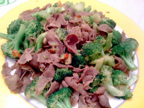 Carnea de miel se taie felii subţiri, de aproximativ 2-3 milimetri grosime. Broccoli se desfac şi se taie pe lungime. La fel se procedează cu usturoiul şi ardeiul. Se încinge o tigaie din teflon şi se pune carnea la rumenit. După ce este pătrunsă, adăugaţi usturoiul şi ardeiul. Când este bine rumenită, carnea se scoate şi peste usturoi şi ardei se pune puţin ulei şi broccoli. Aceştia se prăjesc la foc mare, cu puţin sos de soia diluat cu puţină apă, aproximativ 5 minute, până devin sticloşi. Când broccoli sunt aproape gata, carnea de miel se pune înapoi în tigaie, să se pătrundă aromele, după care se serveşte caldă.
