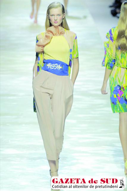 Pentru sublinierea taliei se merge pe o curea lată, în contrast cu restul ţinutei. În weekend, designerul recomandă pantalonul tip şalvar cu imprimeuri florale viu colorate. Aşa că, dacă vreţi să vă aliniaţi tendinţelor modei în această primăvară, alegeţi cu încredere un astfel de articol de îmbrăcăminte.
