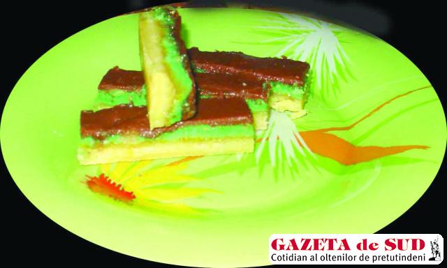 Spumaţi untul, adăugaţi zahărul şi bateţi până devine cremos, adăugaţi gălbenuşul, apoi făina cernută împreună cu praful de copt. Presaţi aluatul în tava 21×21 cm, unsă cu unt, sau pe hârtie de copt. Introduceţi tava în cuptorul preîncălzit la 190 de grade, pentru 12-15 minute, până se auresc marginile.