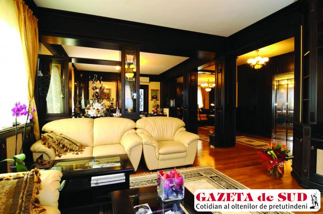 Pentru amenajarea interioară, n-au apelat la serviciile unor designeri. S-au inspirat din casele tipic englezeşti şi, nu în ultimul rând, din cele văzute (simţite, trăite) în hotelul Bellagio din Las Vegas. Experienţa lor de viaţă şi-a spus cuvântul în toate alegerile. Nu au achiziţionat mobila sau obiectele de decor în funcţie de preţ, aşa că nu au numai lucruri scumpe. Criteriile de alegere au fost, totodată, estetice şi funcţionale. Altfel spus, dacă le-a plăcut ceva, au cumpărat. De exemplu, canapelele din living sunt de la Mobexpert, iar corpurile de iluminat, de la Atas Lightining. Biroul are pereţii îmbrăcaţi în rafturi pentru cărţi. Tot aici se găsesc două fotolii clasice, dragi proprietarilor, retapiţate special pentru această încăpere. Mobila din bucătărie e făcută la comandă, din lemn, cu blaturi din granit. Pentru achiziţionarea electrocasnicelor au colaborat cu firma Darel. Camera copilului e zugrăvită în alb şi bej, iar pereţii sunt pictaţi cu personaje inspirate din desenele animate sau filmele pentru copii. Adriana i-a ales pe Winnie şi pe Nemo să-i ţină companie micuţului.
