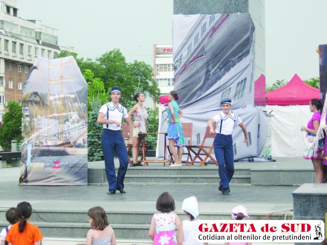 Un popas a fost binevenit, căci personajele şi micii însoţitori aveau nevoie să-şi tragă sufletul. Aşa că Păcală s-a retras în cutia sa, până la o nouă reprezentaţie, iar micuţii însoţitori şi-au demonstrat şi ei talentele, de mari desenatori pe asfalt. Nici cei mai mici care abia ţineau creta nu s-au lăsat mai prejos. O mână de ajutor le-a fost întinsă de cei mari şi lumea poveştilor a reînviat, în desene pe asfalt. Şi părinţii şi-au amintit de anii minunaţi ai copilăriei şi s-au prins în jocul culorilor. Pe esplanada Teatrului Naţional „Marin Sorescu“ alte talente în ale dansului şi muzicii erau aplaudate. Protagoniştii ovaţionaţi erau copiii de la Palatul Copiilor din Craiova.