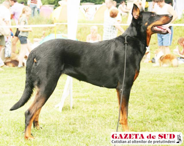 Această rasă este cunoscută de secole în Europa de Vest şi se consideră că strămoaşa sa a fost rasa Doberman. Beauceron are o istorie foarte veche, fiind menţionată într-un manuscris din 1578. Acest câine are un corp solid, rustic şi musculos. Înălţimea masculului este de 65-70 cm, iar a femelei – de 63-68 cm. Greutatea ideală este de aproximativ 30-35 kg. Are botul alungit, ochii nu foarte limpezi, de un maro intens, iar urechile ascuţite şi ridicate. Coada lăsată are forma unui cârlig către vârf.
