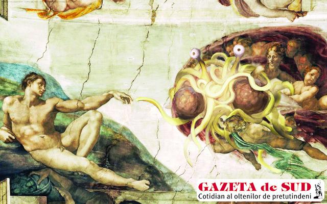Fondatorul religiei Flying Spaghetti Monsterism este Bobby Henderson, un fizician american, care, la începutul anilor 2000, a dorit în acest fel să protesteze împotriva deciziei Kansas State Board of Education de a introduce designul inteligent ca alternativă la teoria evoluţiei în şcoli. Henderson l-a înlocuit pe Dumnezeu cu Monstrul Zburător de Spaghete, care a creat Universul după ce a băut o cantitate mare de bere, astfel explicându-se şi nenumăratele imperfecţiuni. De asemenea, potrivit pastafarianismului, toate dovezile pentru evoluţie au fost plantate de Monstrul Zburător de Spaghete pentru a pune la încercare credinţa supuşilor săi. Nu trebuie omis faptul că, pentru pastafarieni, paradisul este un vulcan de bere și o fabrică de stripperi/stripteuze, în timp ce în infern singura diferenţă este că berea este stătută și stripperii/stripteuzele au boli cu transmitere sexuală. Şi pentru că o religie care se respectă are propriile porunci care trebuie respectate cu sfinţenie, în pastafarianism există opt reguli de bază, care trebuie urmate de adepţii Monstrului Zburător de Spaghete. A şasea dintre acestea spune: „Aș prefera să nu construiţi sinagogi/ biserici/ temple/ moschei/ altare de milioane de dolari pentru mine când banii ar putea fi mai bine întrebuinţaţi pentru stârpirea sărăciei, medicină, pace în lume“.