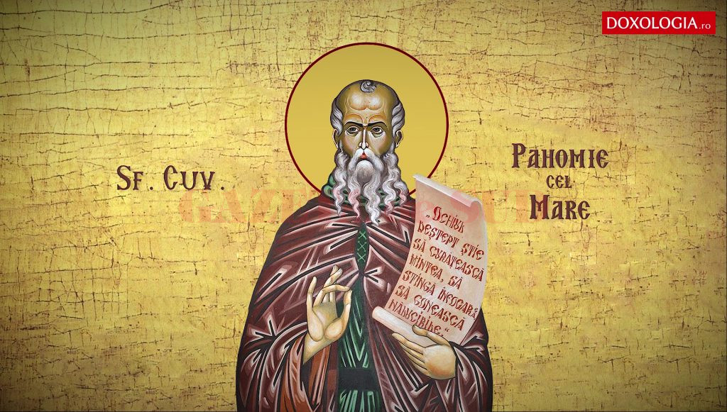 Sfântul Pahomie cel Mare un stâlp duhovnicesc dintre cei mai înalţi ai monahismului egiptean al secolului de aur, al IV-lea. Sfântul Pahomie este considerat întemeietorul şi organizatorul vieţii monahale de obşte. Monahismul cenobitic se caracterizează prin vieţuirea în comun a călugărilor. Aceştia locuiesc în chilii separate, în incinta mănăstirii, nu au avere personală, se roagă şi muncesc împreună, mănâncă împreună la trapeză şi fac ascultare de stareţ, care se îngrijeşte, la rându-i, de administrarea şi buna organizare duhovnicească şi materială a mănăstirii, potrivit cuvantul-ortodox.ro.