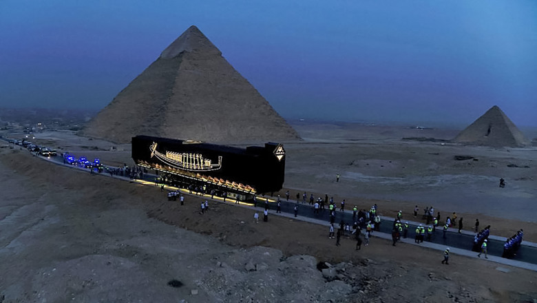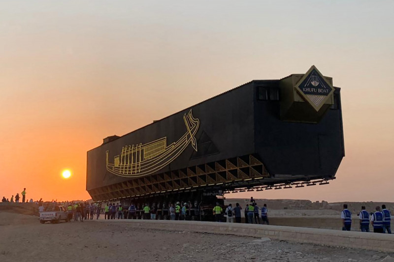 Barca solară intactă a faraonului egiptean Keops, veche de 4.600 de ani, a fost transportată la Marele Muzeu Egiptean, care va fi inaugurat în curând lângă piramidele din Giza.
