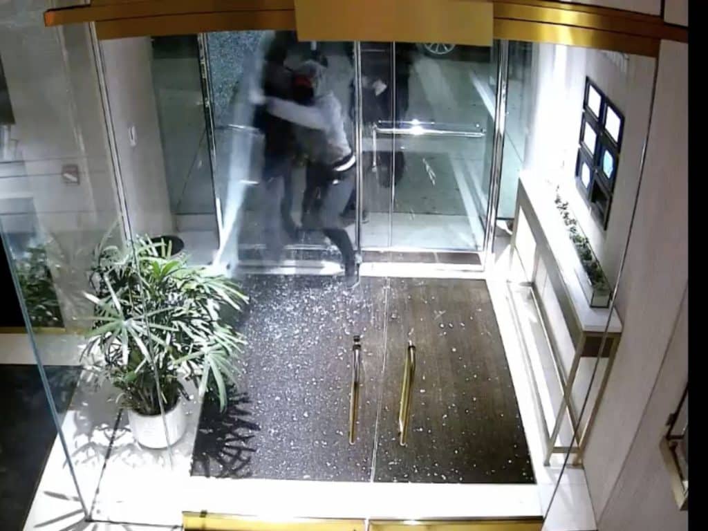 Poliția a postat imaginile de pe camerele de luat vederi care i-au surprins pe hoții intrând în Cellini Jewelers, sâmbătă noapte, folosind un baros, cu care fac tândări tot ce le iese in cale.