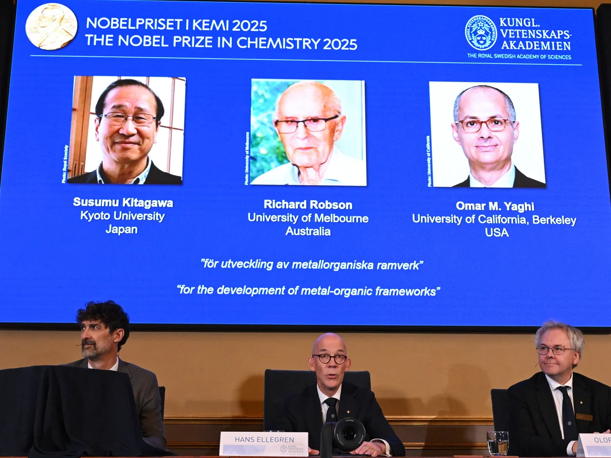 Academia Regală Suedeză de Ştiinţe a acordat Premiul Nobel pentru Chimie 2025 lui Susumu Kitagawa, Richard Robson şi Omar M. Yaghi „pentru dezvoltarea structurilor metal-organice”. Prin dezvoltarea structurilor metal-organice, laureaţii au oferit chimiştilor noi oportunităţi pentru rezolvarea unor provocări cu care ne confruntăm, potrivit Comitetului Nobel.