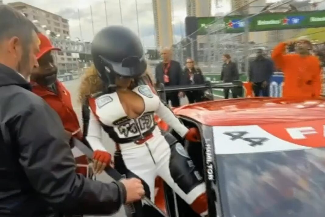 Beyoncé a purtat un costum de curse creat special pentru ea, în timp ce a participat la Formula 1 Heineken Las Vegas Grand Prix 2025, sâmbătă (22 noiembrie), în Las Vegas.