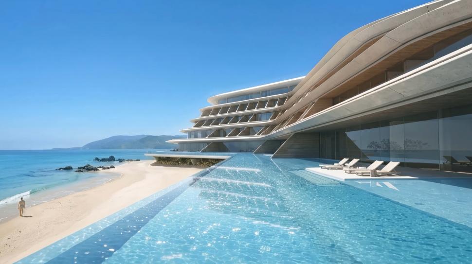 Hotelul va fi amplasat deasupra plajei și va avea o structură modulară compusă din elemente prefabricate, menită să minimizeze perturbarea mediului local în timpul procesului de construcție.