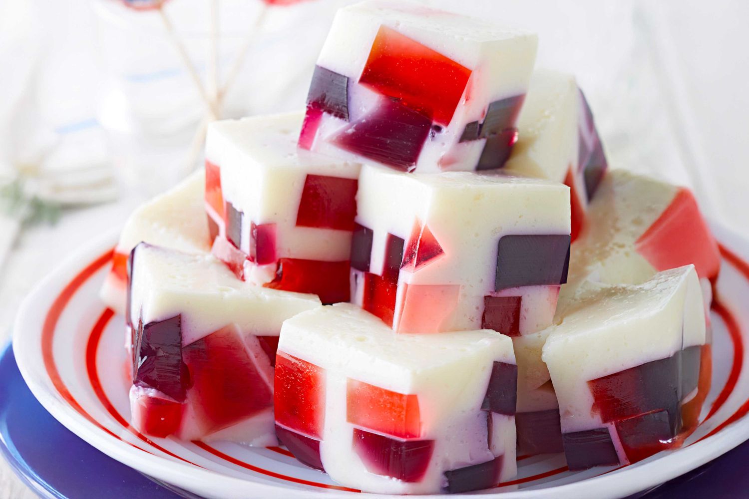 Ungeți o tavă de copt de 33×23 cm cu ulei şi ștergeți excesul. Scoateți jeleul de fructe de pădure din frigider și tăiați-l în bucăți de aproximativ 1,5 cm. Amestecați ușor toate bucățile în tava de copt pregătită și puneți-o în frigider.