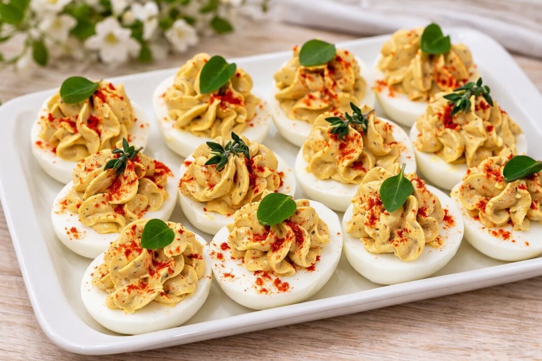 Ingrediente: 10 ouă, 200 g pate de ficat la alegere, 1 lingură de muștar, 25 g unt, 2 linguri maioneză, sare, piper, boia dulce, pătrunjel tocat mărunt sau ceapă verde