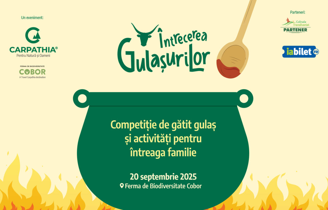 La poalele Carpaților, Ferma de Biodiversitate Cobor, județul Brașov, se pregătește să găzduiască pe 20 septembrie 2025 a treia ediție a „Întrecerii Gulașurilor”, organizată alături de Fundația Conservation Carpathia. Evenimentul promite o zi plină de savoare și tradiție, cu demonstrații culinare, degustări, ateliere pentru copii și părinți, un tur ghidat la cireada de vaci Sură de stepă și un moment artistic în aer liber.