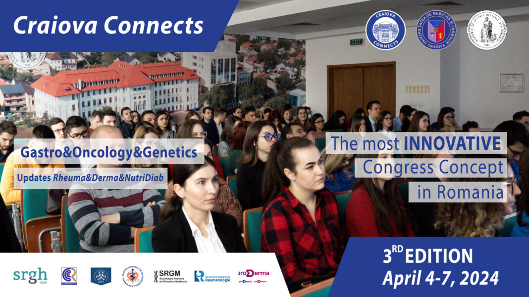 Lansat în anul 2022, de Ziua Mondială a Sănătății, conceptul „Craiova Connects” a reunit până acum cei mai importanți specialiști din gastroenterologie, reumatologie, dermatologie, ginecologie, diabet și nutriție. An de an, aproximativ 500 de participanți on site s-au bucurat de întâlniri a zeci de keynote speakers, au interacționat și s-au conectat la cele mai inovative concepte și proceduri medicale.