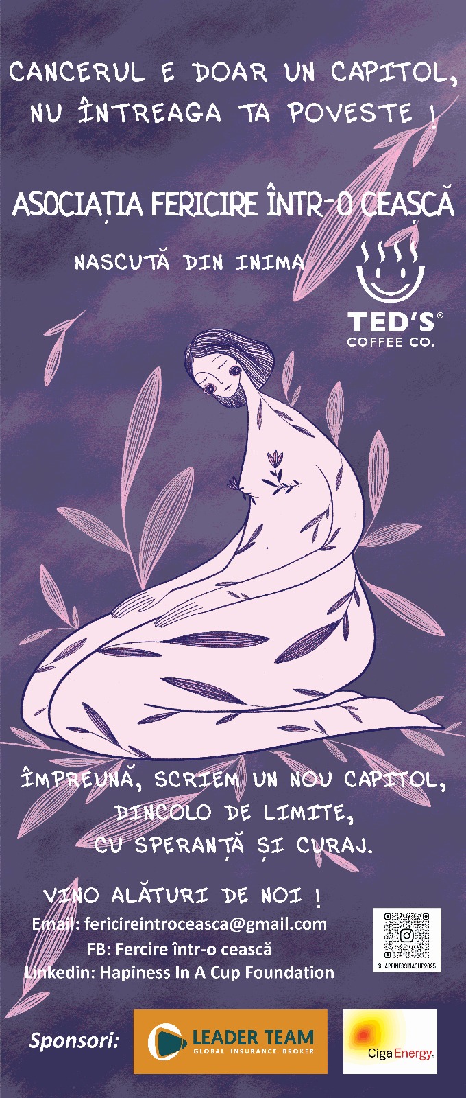 În luna octombrie, dedicată luptei împotriva cancerului de sân, Asociația Fericire într-o Ceașcă, parte a TED’S COFFEE CO., lansează campania „Cancerul e doar un capitol, nu întreaga ta poveste!”.