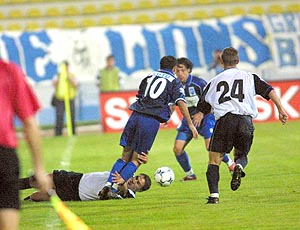 „Huo Craiova, Hai National, Huoo Dinamo!“, cam asa au fost „incurajarile“ adresate de suporterii Universitatii echipei alb-albastre care a jucat, la sfirsitul campionatului trecut, partida cu FC National, meci decisiv pentru desemnarea campioanei. A cistigat Universitatea, iar titlul a poposit in Stefan cel Mare. Din echipa de atunci a lui Netoiu & Florin Marin a mai ramas doar un singur jucator, Vochin, in aceasta vara transformarile suferite pe Unirii 86 readucind in Banie spiritul curat al alb-albastrilor.