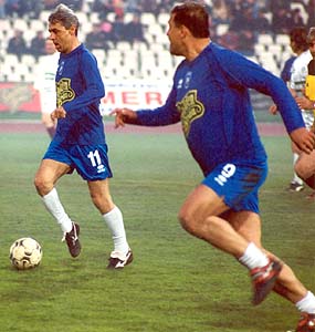 Lovitura de incepere a partidei i-a aparţinut legendarului Dobrin, care, pentru o clipă, şi-a implinit visul de a intra pe gazonul de pe „Ion Oblemenco“. „Visul meu cel mai mare a fost să joc la Craiova, de aceea am şi stat şi citeva săptămini aici. «Craiova Maxima» e unică, dar nu este exclus să se nască o alta. Pentru acest lucru, insă, este nevoie de foarte mult timp. Ori, jucătorii din ziua de azi au ajuns prea repede fotbalişti“.