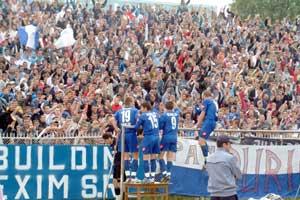 Incurajata de un numar impresionant de suporteri, Pandurii Tirgu Jiu a reusit sa cistige la Severin si sa promoveze pentru prima data in Divizia A, dupa 42 de ani de existenta. Pregatit sufleteste pentru victorie la Minastirea Vodita, fiecare „pandur“ a evoluat in jocul cu Building cu matanii la mina, ruga bisericeasca avind efect in deznodamintul meciului.