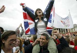 Anuntul desemnarii Londrei ca gazda a Jocurilor Olimpice de vara din 2012 a fost primit cu strigate de bucurie de peste 10.000 de londonezi, care au fost in Trafalgar Square, in inima capitalei, unde au urmarit in direct, pe un ecran urias, alegerea orasului lor.